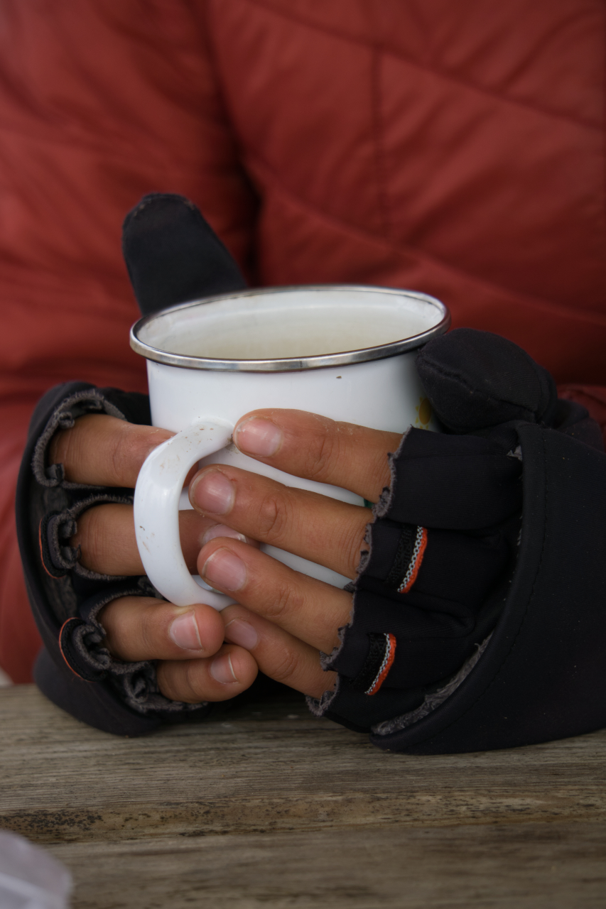 Den Winter erlebten wir hingegen in der Türkei in der anatolischen Hochebene. Tagsüber kamen die Temperaturen kaum über den Gefrierpunkt und nachts fielen sie auf bis -10°C. Und wir immer draußen. Egal ob Schlafen, essen, Rad fahren oder Pause machen. Wenn wir Glück hatten, fanden wir mittags einen Bäcker oder ähnliches, wo wir uns kurz aufwärmen konnten, aber ansonsten musste der Körper immer arbeiten, um seine Temperatur zu halten. Ging es bergauf, schwitzten wir trotz Kälte, nur um bergab dafür umso mehr zu frieren. Da gab es am Ende des Tages keine heiße Dusche und ein gemütliches warmes Bett. Irgendwann waren wir vollkommen erschöpft.